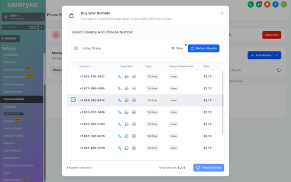 Paso 7. ¡Selecciona uno de los números de teléfono que te gusten y haz clic en “Proceder a comprar”!