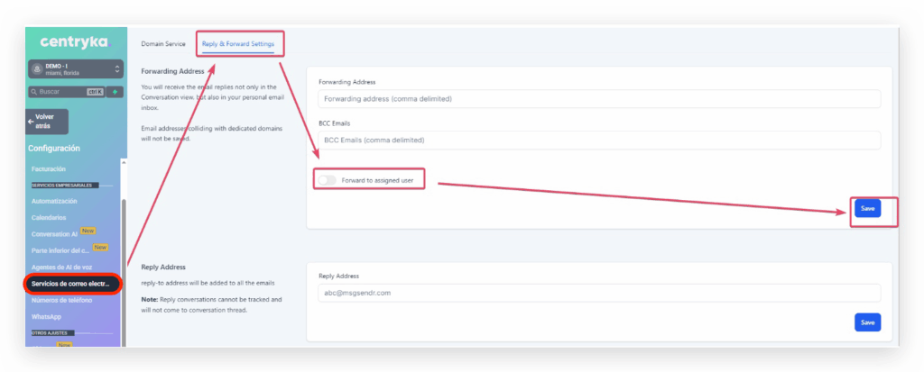Asegúrese de Save una vez que haya ingresado una dirección de respuesta.
