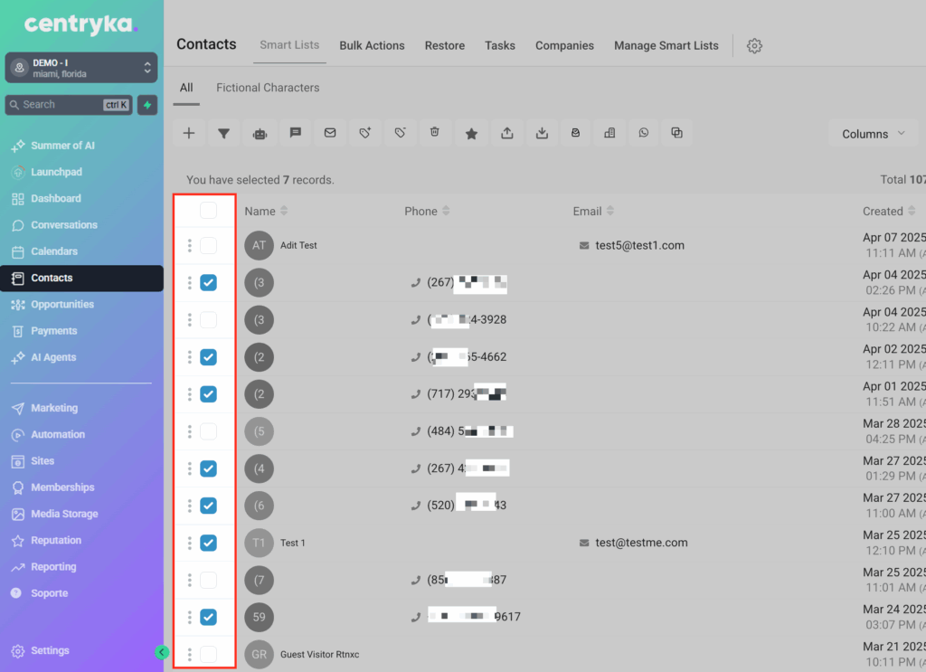 Usa las casillas de verificación en el lado izquierdo para seleccionar los contactos que deseas etiquetar. Puedes seleccionar tantos registros como necesites.