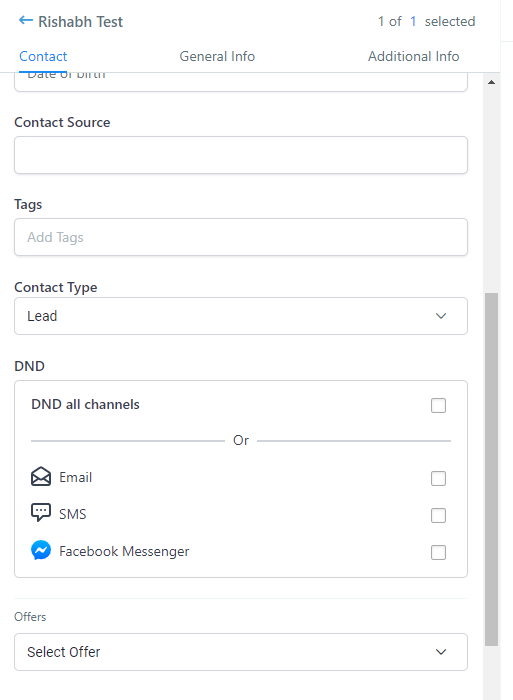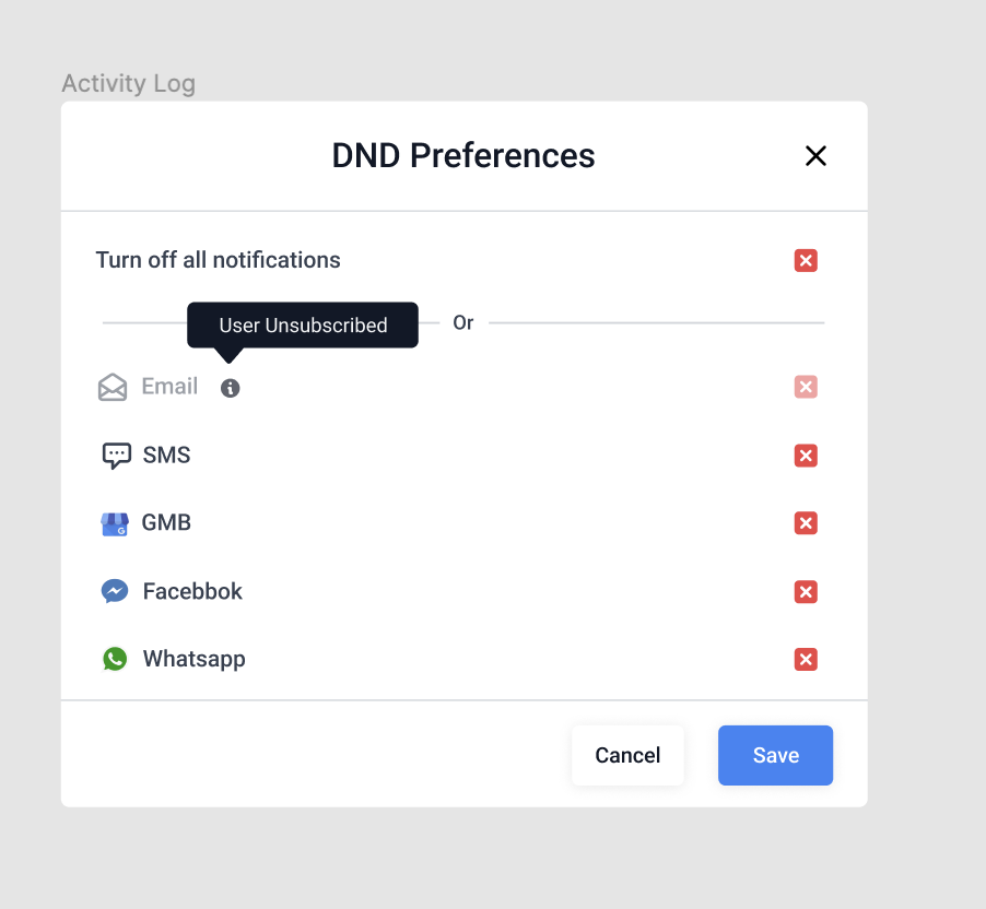 Ahora el modo DND puede configurarse por canal individual (FB, SMS, Llamadas, Emails, GMB, WhatsApp) una vez que estén integrados con el sistema.