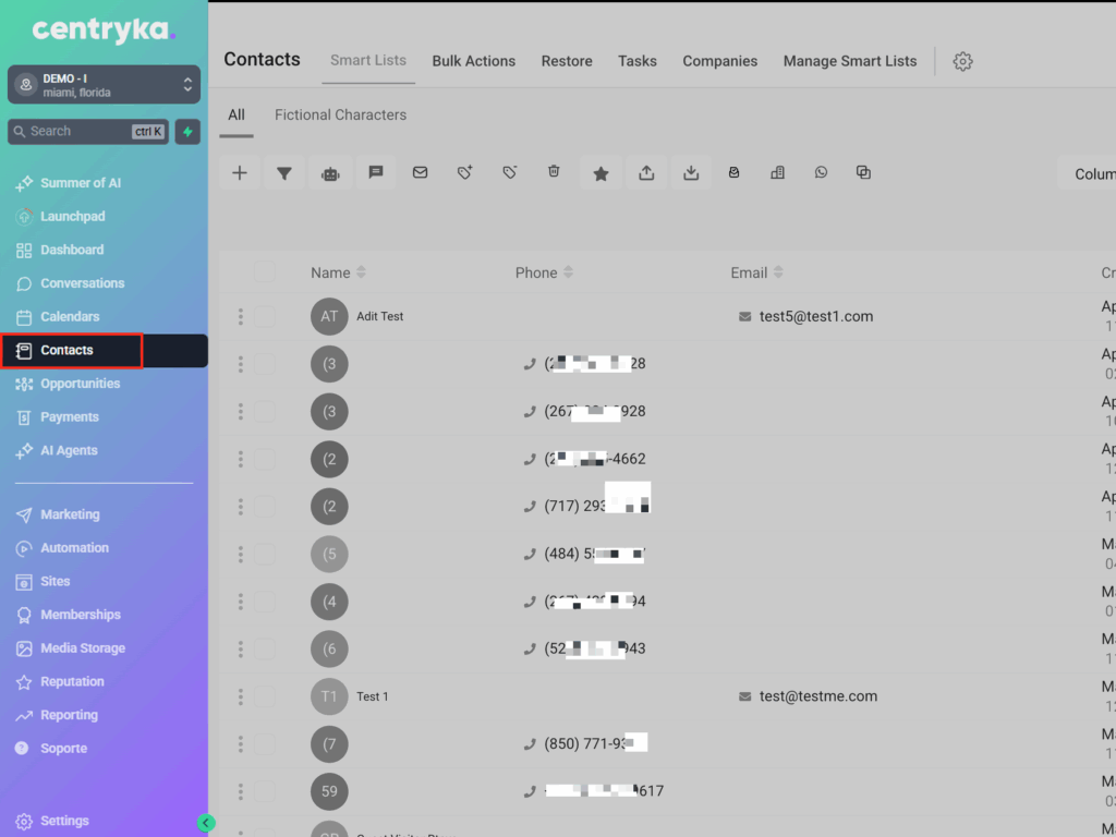 Desde el menú de navegación a la izquierda de tu dashboard, Clic en Contacts para acceder a tu lista de contactos.