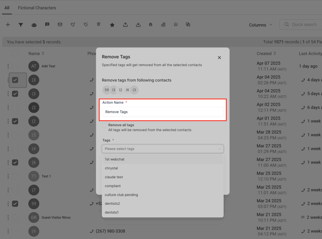 Este artículo te mostrará cómo eliminar etiquetas de múltiples contactos a la vez usando la acción masiva Remove Tags. Ya sea que estés limpiando segmentos obsoletos, reestructurando tu CRM o borrando metadatos de contacto, esta función te ayuda a mantener registros precisos de forma rápida y eficiente. Te explicamos qué hace esta acción, por qué es útil y exactamente cómo realizarla.