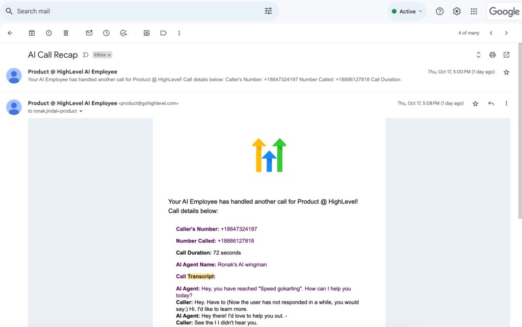 Envía correos electrónicos a una o más personas después de una llamada en la que haya participado ese agente de IA específico.