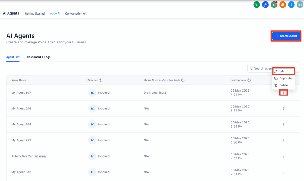 Puedes crear un agente nuevo (consulta nuestra guía sobre cómo crear agentes de Voz-IA) o editar uno ya existente.