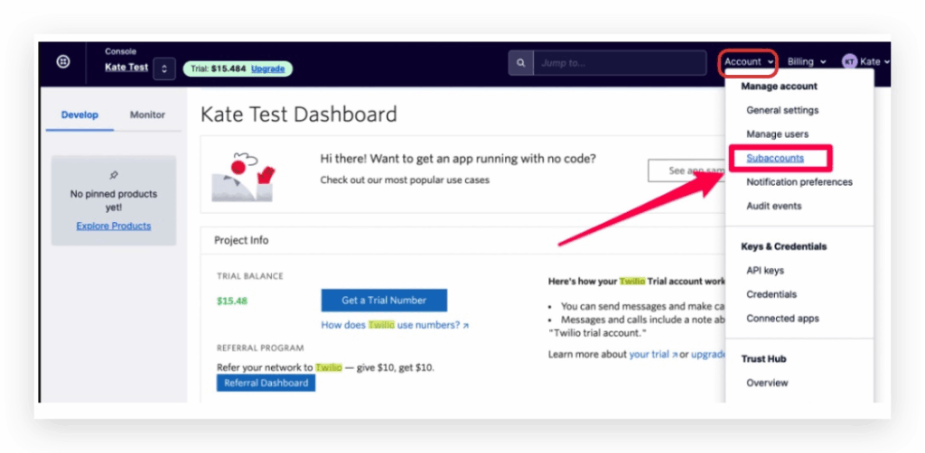 Paso 1: Vaya al menú desplegable Cuenta en el menú superior derecho, haga clic en Subcuentas