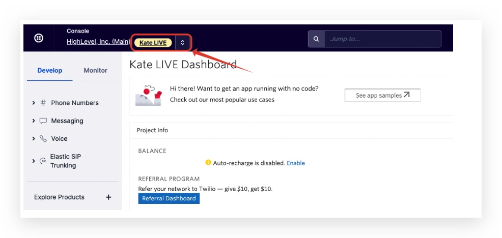 - Paso 2: Si hay demasiadas subcuentas dentro de Twilio, puedes volver a Centryka y copiar el SIN de la cuenta para esa ubicación para buscar en Twilio: